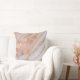 A stylish feminine throw pillow in marbled pink and white with gold glittery accents scattered throughout.