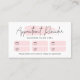 Feminine beauty salon appointment reminder card with blush pink watercolor background and elegant modern script font. This trendy pink aesthetic beauty spa appointments card includes 3 time & date slots or you can remove / add more as you need to. Add your logo to the back and make trendy booking cards for your business.