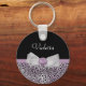 Feminine Purple Cheetah Print Girly Bow and Name Key Ring