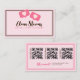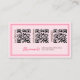 Invest in your brand with this Feminine Social Media Pink Script Text Business Card template with three QR codes. Link the QR codes to your top three social media platforms and make it easier than ever for your customers to connect with you. This soft pink business card with a thin chocolate brown key lines features a thick, elegant script font with a subtle retro vibe and fun social media heart icons.