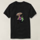 I give wanted to give this a 4 instead of a 5 because these Basic DARK T0shirts run unexpectedly SLIM or Narrow. Which is great if you do not have a potbelly, but I have a paunch. It isn't the shirt's fault that I've got a beer belly. The design and shirt itself is a quality cotton shirt. The color is more of a deep purple, but still a very pretty color. The Basic DARK T-shirts run a bit SLIMMER than the Basic Ts. The neck is a fraction narrower (or seems to be narrower) also. I'm a paunchy middle-aged woman and my neck is 12 inches (31cm) thick and the neckline fell about the same as in the photo of the man, and I had the desire to tug it a bit. So if you're a thick necked man or like loose shirts, be aware these are slimmer shirts. Once I get rid of my lockdown paunch it'll look great. The shirt washed well in cold water with no apparent bleeding. We don't have a dryer, so it hung dry. Did not shrink. Love the colors and the design. The design looks smaller on my shirt than it does on the model on-line. But still, it looks good on the shirt. The printing looks as it does on the model, just the size seems fractionally smaller. Washed garment in cold water, hung dry and design appeared unaffected.