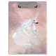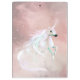 Feminine unicorn with swirls of mane and tail in soft pastel colours prances among the clouds and stardust unique clipboard