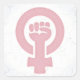 The feminine symbol with a power fist in the centre in shades of pink, on t-shirts, sweats, buttons, stickers, gift items.