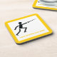 Fencer black silhouette fencing custombeverage coaster that features a minimalist pictogram icon of a black silhouette of a fencer holding his sword and your text on white background with yellow border. The perfect gift for the fencing athlete or lover in your life. See lots of designs at our Sports Gifts store.