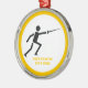 Fencer black silhouette fencing metal ornament showcasing a minimalist pictogram icon of a black silhouette of a fencer holding his sword and your text on white background with yellow border. The perfect gift for the fencing athlete or lover in your life. See lots of designs at our Sports Gifts store.