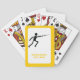 Fencer black silhouette fencing custom Bicycle playing cards that feature a minimalist pictogram icon of a black silhouette of a fencer holding his sword and your text on white background with yellow border. This cool, modern design is a template and it is completely customizable. Personalize it and change text with monogram, name or your message. The perfect gift for the fencing athlete or lover in your life. See lots of designs at our Sports Gifts store.