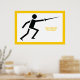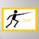 Fencer black silhouette fencing poster showcasing a minimalist pictogram icon of a black silhouette of a fencer holding his sword and your text on white background with yellow border. Personalize it and change text with monogram, name or your message. The perfect gift for the fencing athlete or lover in your life.