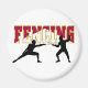 A nifty fencing design featuring the silhouettes of two fencers engaged in a match.