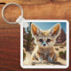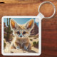A cute Fennec fox sits gracefully in the desert, its large ears and soft fur catching the golden sunlight. This small, charming creature adds a touch of warmth to the vast, arid landscape.