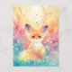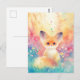 This heartwarming design features an incredibly sweet and fluffy fennec fox shown resting peacefully in a lush, vibrant meadow. Created as a high-quality digital illustration in a soft watercolor style, the fox has fuzzy cream and orange fur, large iconic ears, and bright blue eyes that gaze forward with a gentle expression. The character is nestled among a thick field of hand-painted pink, yellow, and blue wildflowers and green blades of grass that rise toward a brilliant, sun-drenched yellow sky. A warm golden glow permeates the scene, accented by whimsical paint splatters and delicate floral details that create a sense of peaceful optimism. The overall aesthetic is bright, cheerful, and full of natural wonder, making it an irresistible choice for fans of desert animals and whimsical nature art. This cheerful fennec fox postcard is a wonderful choice for sending a "thinking of you" sunshine note or a playful greeting to a friend who loves unique animal companions. You might choose to use this cute card for a summer-themed birthday invitation or to celebrate a fun afternoon spent exploring a local botanical garden with your family. It also makes a precious decorative piece for a child's nursery wall or a bright addition to a travel journal as a small token of happiness. This versatile design is also an excellent choice for a housewarming message, a baby shower thank you note, or as a heartwarming way to share a message of joy for any situation or event.