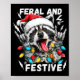 Feral And Festive Funny Christmas Rocker Raccoon S Poster