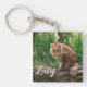 This cat photo keychain features one of my original photos of feral cat Lucy. The photo was captured in the summer when she was sitting on a fallen tree. Personalise this keychain with name or other text.