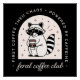 Funny racoon lovers feral coffee club powered by caffeine sarcastic quotes first coffee then chaos. Cool weird wild animal retro vintage whimsical aesthetic girl gifts living room kitchen home decor black poster print.
