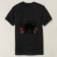 A spooky black cat design perfect for the autumn season, featuring a feral feline surrounded by fall leaves and a full moon in the background.