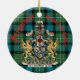 Ferguson Castle Ornament - Kilkerran Castle tower dated back to 1464 stands in ruins today. It has been replaced by a grand manor house built and lived in by the chief of the Clan Ferguson even to this day. The back of the ornament has the Ferguson 3 boar and buckle shield and the bee and thistle. The motto translates "Sweeter After Difficulties." and "That I May Be Of Use." Supported by 2 Griffins - In heraldry, the griffin (a mythical creature with a lion's body and an eagle's head/wings) symbolizes strength, courage, leadership, and vigilance, representing a powerful guardian of treasures or divine power, combining the king of beasts with the king of birds. Backed by Ferguson Tartan Plaid. A very fitting ornament to celebrate family at the holidays or any time.