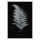 Fern drawing. Gymnogramma Ochracea. Black and White 19th Century botanical illustration of a fern with turquoise blue accents. X-ray effect. Black background and white outline or contour. Negative inverted colours.