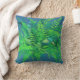 Fern leaves, pteridophyte, floral art blue & green cushion