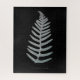Fern drawing. Polypodyum Vulgare. Black and White 19th Century botanical illustration of a fern with turquoise blue accents. X-ray effect. Black background and white outline or contour. Negative inverted colours.