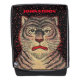 This Bold Face adult backpack with a interchangeable front face has a ferocious looking Asian striped tiger head outlined in red with Asian symbols on his eyebrows on a black background with red dots. Customise your name with the template.