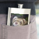 The product is a good size and came exactly as it was pictured. The lid is not attached to the flask, which could be dangerous on drunken nights... The print came out surprisingly well and looks very sharp. Would definitely recommend.