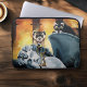 Two Ferrets stealing a set of keys on top of a stone cherub
