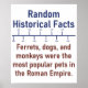 History is fascinating. Reveal your fascination with this history-themed fact: Ferrets, dogs, and monkeys were the most populare pets in the Roman Empire.