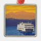 Ferry and Mountains - Seattle, Washington Metal Tree Decoration