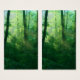 Rays of the morning sun streaming into a brilliantly green summer forest, with massive ivy-covered trees and a thick blanket of underbrush. A photograph digitally manipulated to give the over-grown vines, blue-green mist, golden god-rays, and spring green tree leaves a dream-like quality.