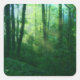 Rays of the morning sun streaming into a brilliantly green summer forest, with massive ivy-covered trees and a thick blanket of underbrush. A photograph digitally manipulated to give the over-grown vines, blue-green mist, golden god-rays, and spring green tree leaves a dream-like quality.