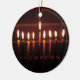 This ornament celebrates the Festival of lights, also known as Hanukkah, Chanukah, Chanukkah, Chanuka, or the Feast of Dedication. It is an eight day Jewish holiday commemorating the rededication of the Holy Temple (the Second Temple) in Jerusalem by Judas Maccabee at the time of the Maccabean Revolt. The festival is observed by the kindling of the candles of a unique candelabrum, the nine branched Menorah or Hanukiah, one additional candle on each night of the holiday, progressing to eight on the final night. The extra light is called a shamash whose purpose is to have a light available for use, as using the Hanukkah lights themselves is forbidden.