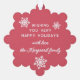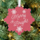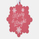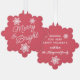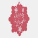 This Christmas greeting ornament card is a perfect way to send seasonal greetings and holiday wishes to your family and friends. The card has a vintage dark pink red coloured background that creates a soothing and elegant contrast with the festive white stars and snowflakes that decorate it. The card has a simple and classic design that is also trendy and eye-catching. The card has space on the back where you can customise or personalise it with your family name or individual names, making it more special and unique.