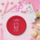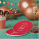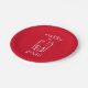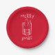 Merry Xmas with a festive and sparkling shot glass on a red and white paper plates.