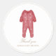 Seal your envelopes or favours with this adorable watercolor red baby outfit sticker — perfect for a cosy winter baby boy shower.