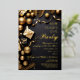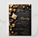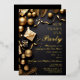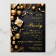 Modern holiday-themed baubles, gifts, ribbons and confetti black and faux gold with real gold foil text "New Year's Eve Party" design.