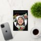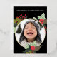 Send a cheerful holiday greeting to friends and family with this real foil photo Christmas card. Beautiful greenery and berries with real foil circle frame show off your favourite holiday photo on an elegant black background. Please view this seasonal collection for additional holiday colour options.