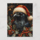 A cute black raven or crow with a santa hat festive Christmas or yule themed design