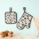 Festive black gold floral pattern Oven Mitt & Pot Holder Set