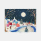 Winter has arrived and covered a village with snow. Children delight, people enjoy their winter night against a bright full moon.
