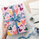 Festive Blush Red Pink Blue Green Heart Pattern Wrapping Paper