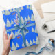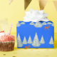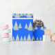 Festive Brown Deer under Snowy Spruce Trees Blue Wrapping Paper