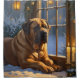 A heartwarming holiday scene featuring a dog sitting peacefully beside a window, surrounded by glowing Christmas lights. This cosy and festive design captures the spirit of the season, perfect for adding warmth and charm to any space. Ideal for dog lovers and holiday decor enthusiasts.