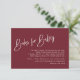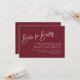 This festive burgundy red baby shower books for baby card is perfect for an earthy, gender-neutral Chrismas themed red baby shower. The design features elegant yet rustic typography.