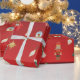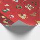 Festive burgundy Christmas wrapping paper with 3D -style holiday decorations, adding depth and joy to every gift. Perfect for wrapping presents this holiday season.