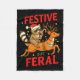 Festive But Feral Funny Christmas Raccoon Riding R Fleece Blanket