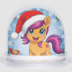 Colourful cartoon pony with a Santa hat, surrounded by snowflakes and holiday ornaments, celebrating the cheerful spirit of Christmas during the winter season. Radiates joy, holiday magic, and seasonal warmth.