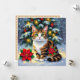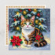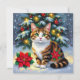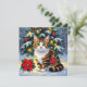 Festive Cat and Poinsettia Customized Christmas Holiday Card