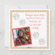 A personalized Christmas card with a front cover of a festive cat, poinsettias and a Christmas tree outside on a snowy day. On the back you can add a custom message and a family photo.