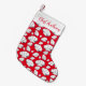 Festive red Christmas stocking printed with white chef and cook hats. The perfect christmas gift for chefs, cooks, bakers and caterers