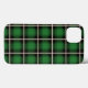 Festive Chequered Green, Black, White, & Brass Plaid iPhone 13 Case.