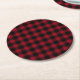 Festive Chequered Red & Black Plaid Pattern Round Paper Coaster